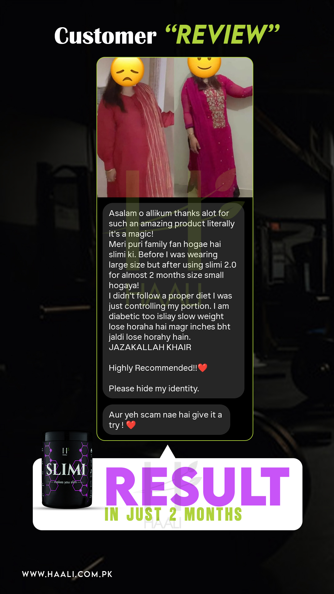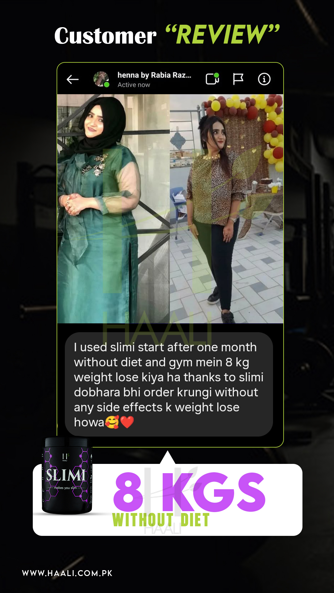 Slimi contains 18 powerful herbs which directly hit the fat stored in your body and burn fat in a natural way, it also fulfills the nutrients in your body.