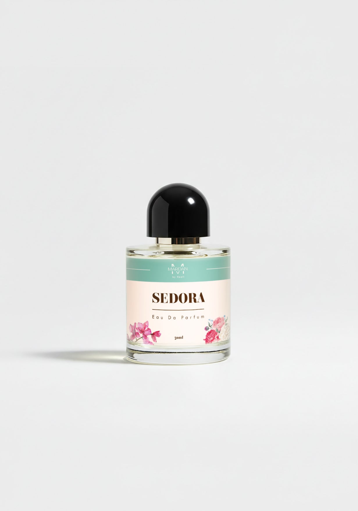 Sedora features a fruity-floral fragrance with a prominent combination of purple passion fruit, Shangri-La peony, and Madagascan vanilla orchid. It typically opens with a bright, citrusy blend of passionfruit, grapefruit, and tangerine, evolving into a floral heart with peony, jasmine, and lily-of-the-valley. The base notes often include musk, woods, and oakmoss for a warm and lasting finish.